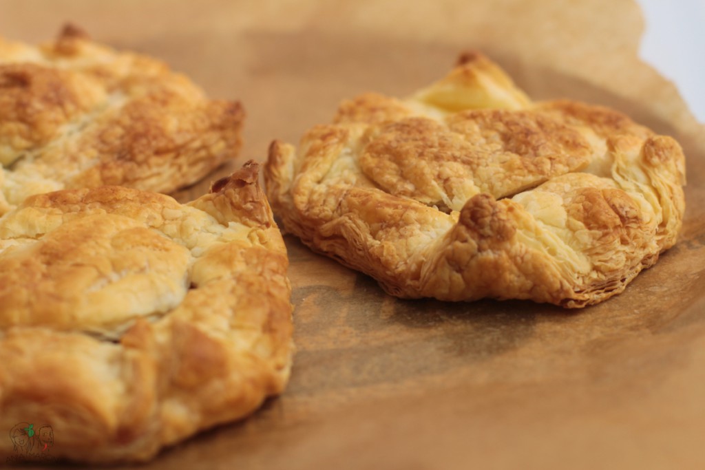 Robiłam ostatnio tartę śniadaniową z ciasta francuskiego. Został mi spory kawałek ciasta, które świetnie pasuje również do słodkiej wersji ciasteczek. Szybkie, proste i niezawodne.