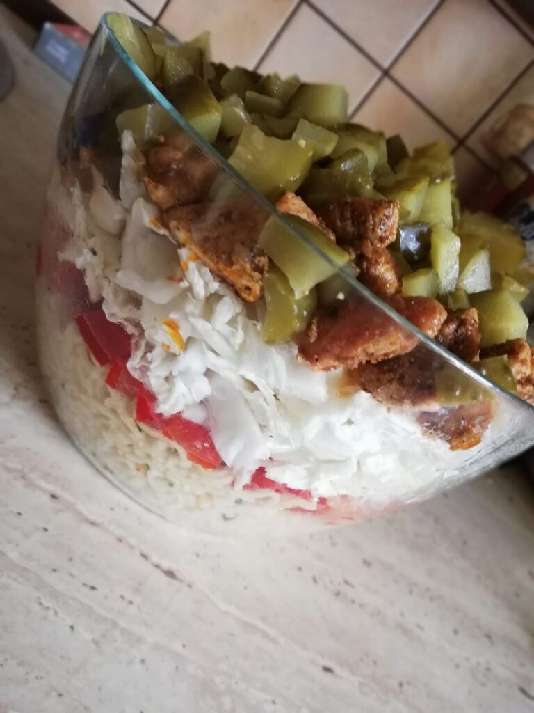 Przepis na sałatkę z kurczakiem i makaronem z zupek chińskich. Sałatka ładnie…