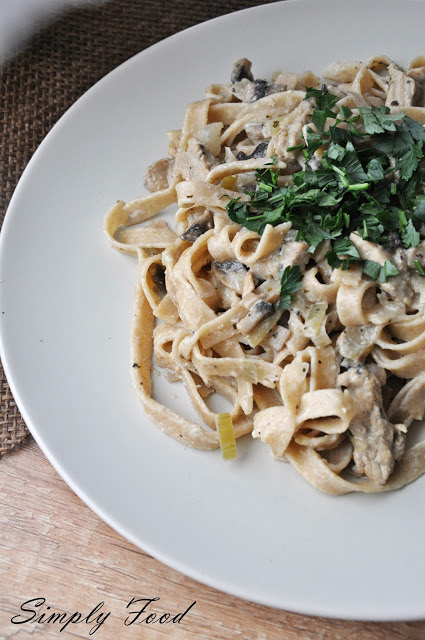 Tagliatelle z wieprzowiną w sosie pieczarkowym