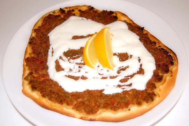 Wolny czas służy mi pod względem aktywności blogowej, a zatem dzisiaj zapraszam na kolejną kulinarną wyprawę. Proponuję proste, ale jakże pyszne danie rodem z kuchni Tureckiej – lahmacun – rodzaj tureckiej pizzy na cienkim cieście drożdżowym z fenomenalnie doprawionym mięsem mielonym. Przyznam, iż rezultat dzisiejszej wyprawy zdecydowanie zaskakuje in