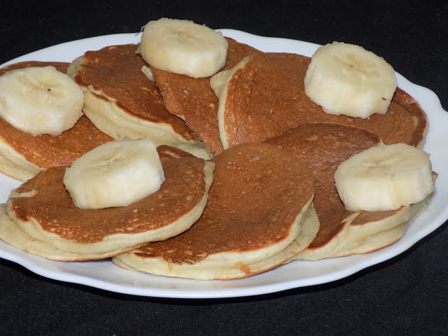 2 szklanki mąki1 szklanka mleka2 duże dojrzałe banany2 jajka1,5 łyżeczki proszku do pieczenia2 łyżki olejuszczypta soli
