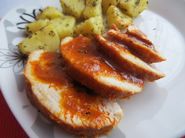Składniki:1 kg piersi z indyka6 łyżek oliwy1 łyżeczka musztardy sarepskiej1/2 łyżeczki soli1…