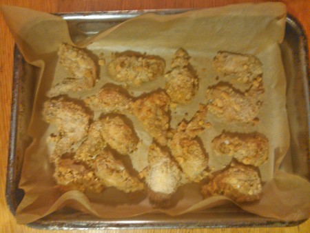 Polecam skrzydełka z kurczaka w panierce z krakersów pieczonych w piekarniku..