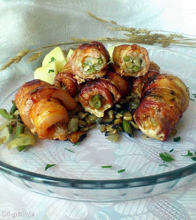 Przepis autorski (mój).Boczek można zastąpić innym rodzajem mięsa – choć w tej wersji roladki smakują rewelacyjnie!
