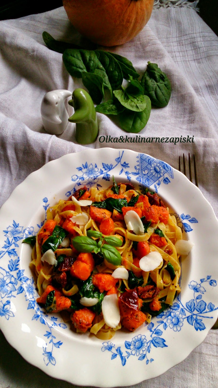 MAKARON Z DYNIĄ, SZPINAKIEM I SUSZONYMI POMIDORAMI