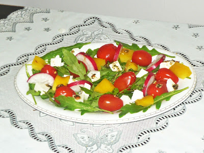 Sałatka z rukoli, fety i pomidorków Sok z limonki fantastyczny do sałatki…