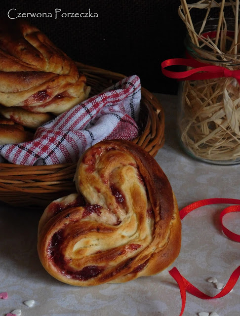 Nie zdążyliście upiec nic wymyślnego na dzisiejsze święto? Nic straconego, mam dla Was ratunek! ;)Na śniadanie, kolację lub deser, urocze serduszka z ulubionym dżemem.Ciasto drożdżowe z mojego ulubionego i moim zdaniem najlepszego przepisu, który zawsze się udaje.Co prawda jest trochę zabawy z zawijaniem, ale nie przejmujcie się, liczą się chęci.