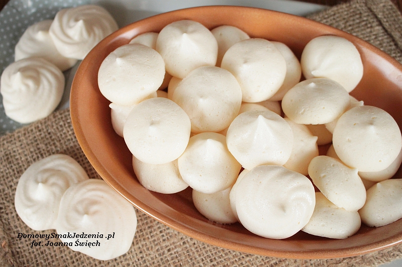 Wodę z ciecierzycy ubijamy na wysokich obrotach tak jak białka, aż otrzymamy sztywną pianę. Następnie stopniowo dodajemy cukier puder, cały czas ubijamy. Na koniec dodajemy sok