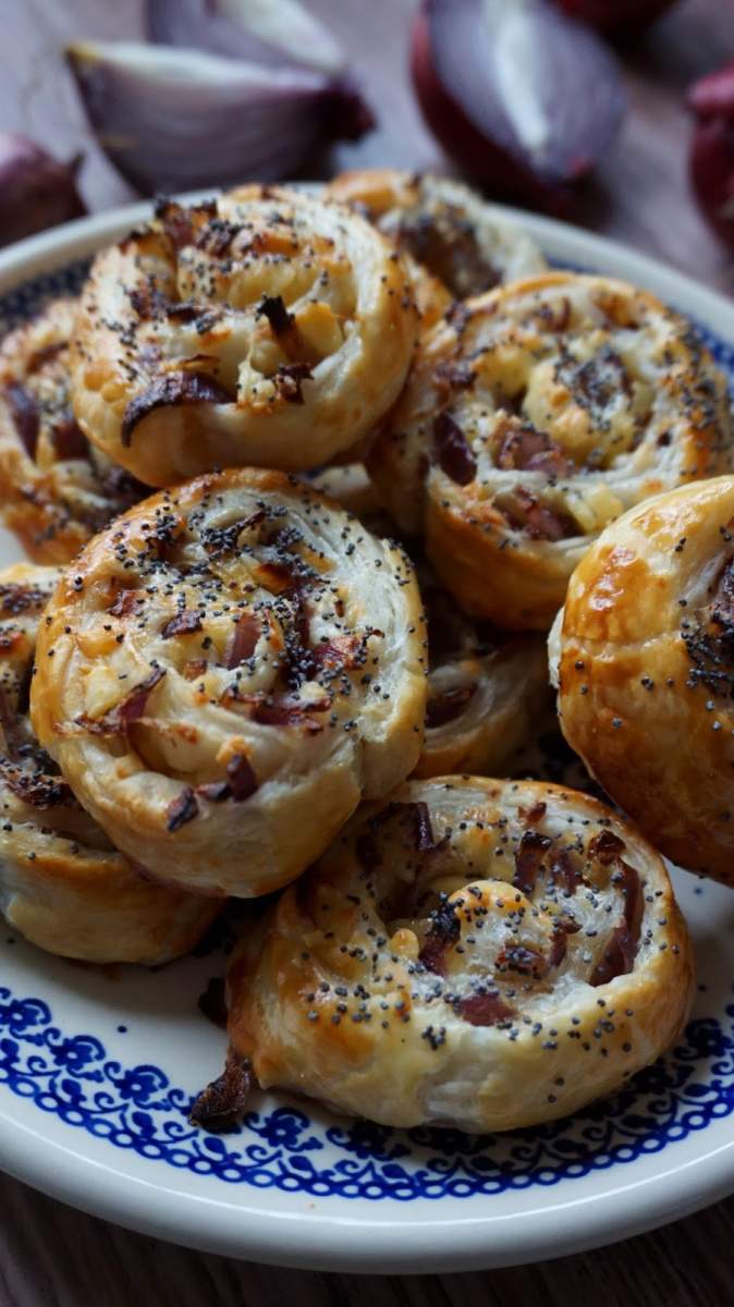 Jeśli lubicie cebularze to musicie spróbować tych przygotowanych na bazie ciasta francuskiego. Są absolutnie przepyszne zarówna na ciepło jak i zimno i można je zrobić w 20 minut. Doskonale sprawdza się jako przekąska na przyjęcia i imprezy.