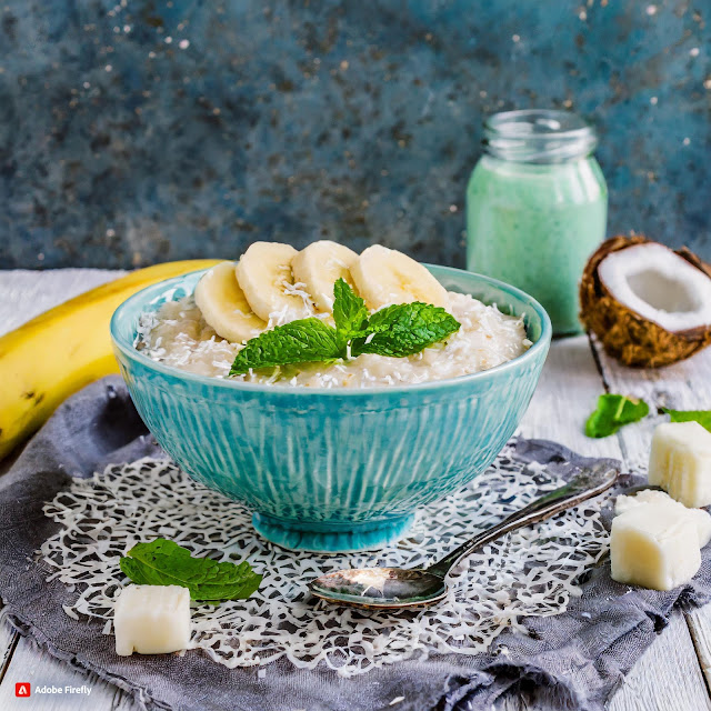 Owsianka miętowa z bananem, kokosem i czekoladą / Mint oatmeal with banana, coconut and chocolate