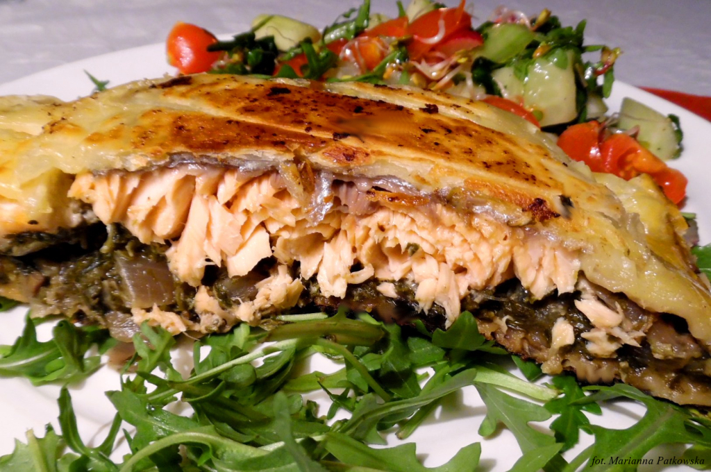 Po raz pierwszy (i właściwie jedyny) z połączeniem łososia, szpinaku i borowików spotkałam się w doskonałej Trattorii Adamo w Zakopanem i od razu się w nim zakochałam. Łosoś i szpinak jest kombinacją bardzo typową. Bardzo dobrą, choć banalną. Borowiki ożywiają sytuację, nadając swój szlachetny ton, głębię i
