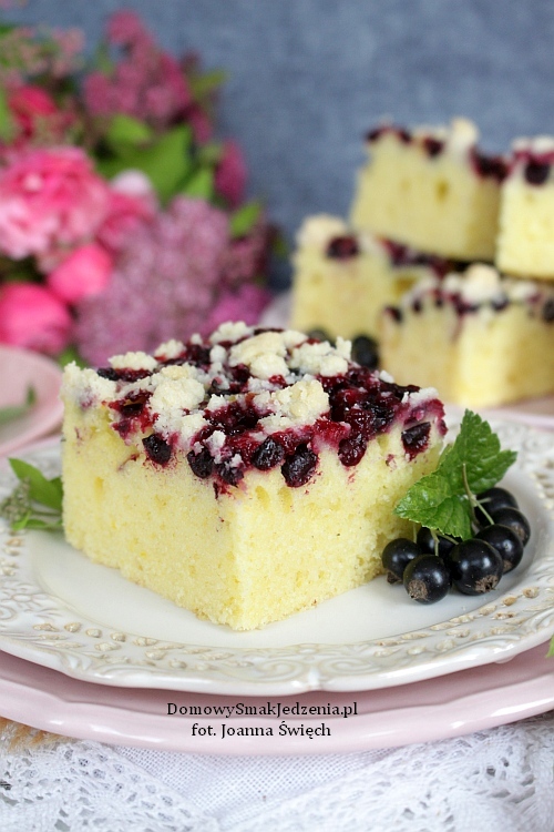ciasto widelcem mieszane z czarną porzeczką i kruszonką