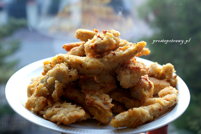Przygotowanie :Mięso pokroić w plastry, a te w cienki paskiOprószyć je przyprawami, włożyć do miseczki i skropić sokiem z cytryny, chwilę potrzymaćJajko roztrzepać