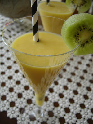 1. Miksujemy mango z sokiem i mlekiem kokosowym.