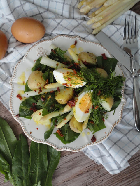 Prosta i smaczna sałatka z wiosennymi akcentami w postaci szparagów, szczawiu i…