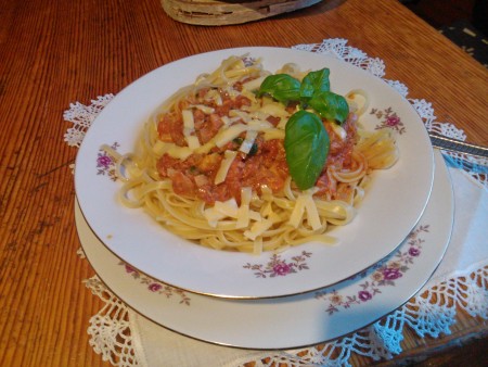 Polecam spaghetti z tuńczykiem w sosie pomidorowym..