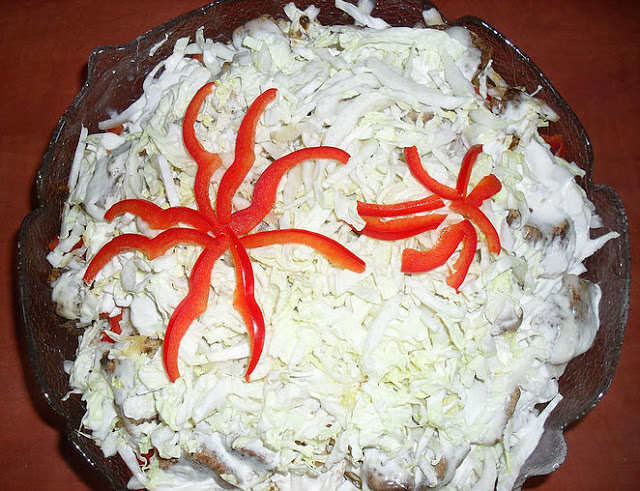 Sałatka Gyros Składniki:4 piersi kurczakakapusta pekińska6 ogórków konserwowych2 średnie cebule1 puszka kukurydzypapryka…