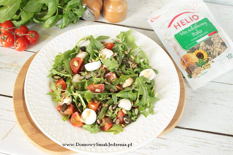 składniki: 1 opakowanie rukoli ok. 250 g pomidorków koktajlowych 150 g kuleczek…