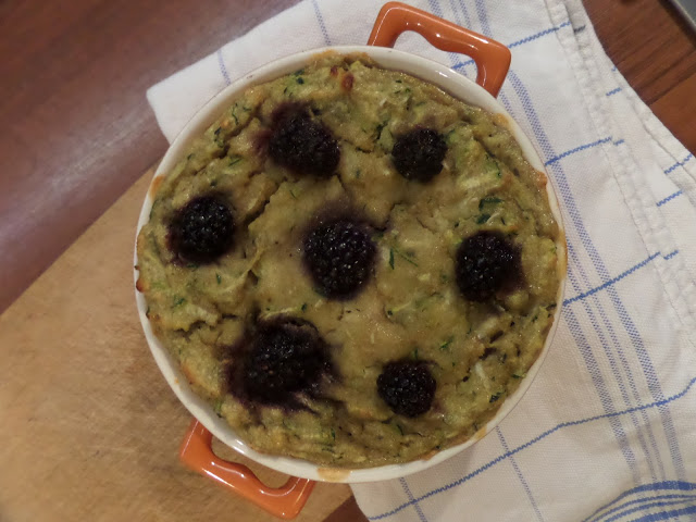 kokosowe ciasto z cukinią, bananem i jeżynami