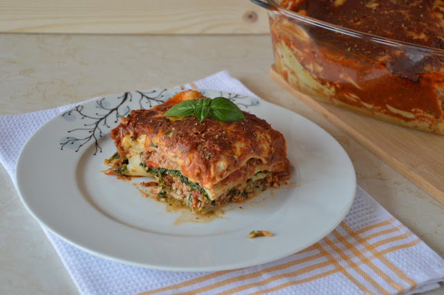 Na dzisiejszy obiad zrobiłam swoje ulubione danie, czyli lasagne mięsne, a że również uwielbiam szpinak, to też znalazł się w potrawie 🙂 Pamiętam do dziś jak robiłam swoją pierwszą lasagne. Była tylko z mięsem mielonym, a ja i tak nie potrafiłam sobie z nią poradzić, a to za sprawą