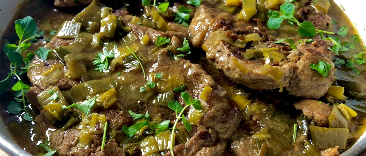 Karkówka duszona z porem Krucha, soczysta, aromatyczna i mięciutka karkówka duszona w…