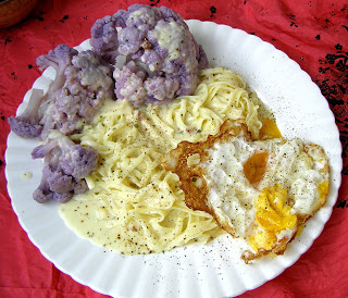 makaron carbonara z jajkiem sadzonym i kalafiorem na szybki obiad…