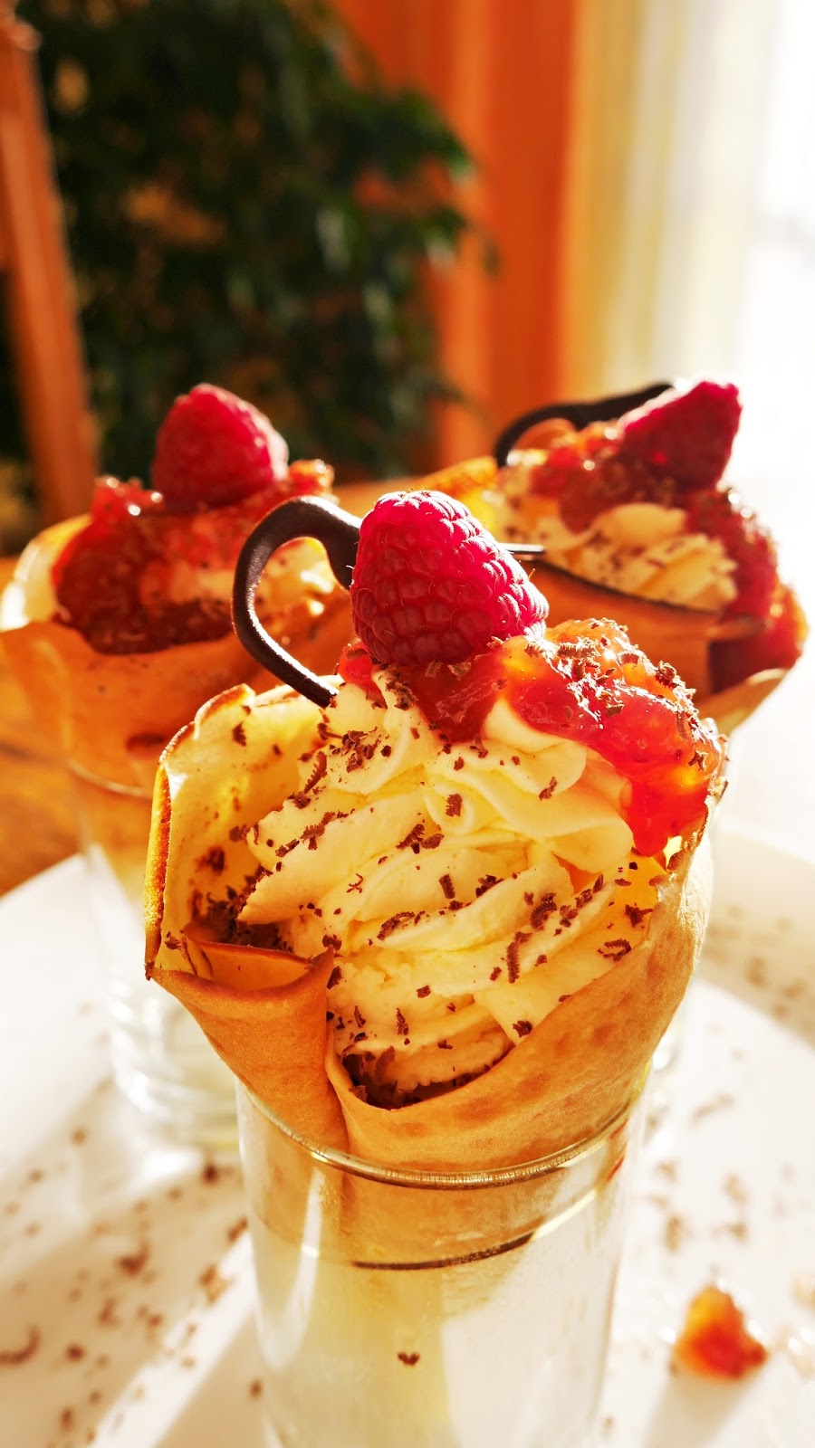 Niestandardowe podanie naleśników. Słodki deser z bitą śmietaną, dżemem truskawkowym, czekoladą i…
