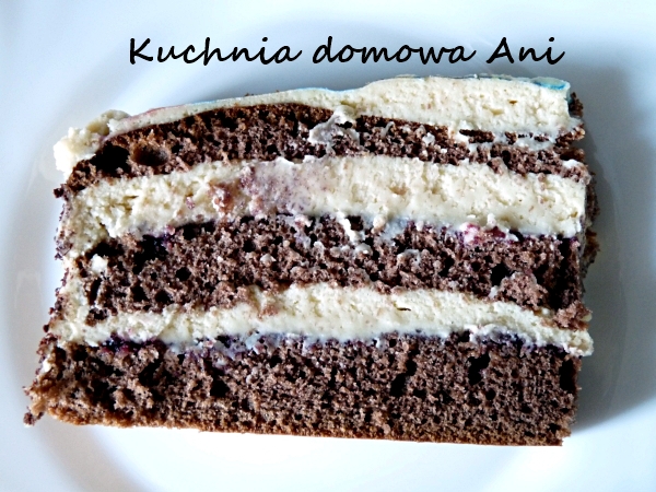 Pyszne, puszyste ciasto z kakaowym biszkoptem, budyniową masą i polewą z mleka…