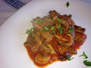 Delikatna potrawka z duszonej wołowiny, podkreślona aromatem pieczarek, to danie które wprost urzeka swym smakiem.