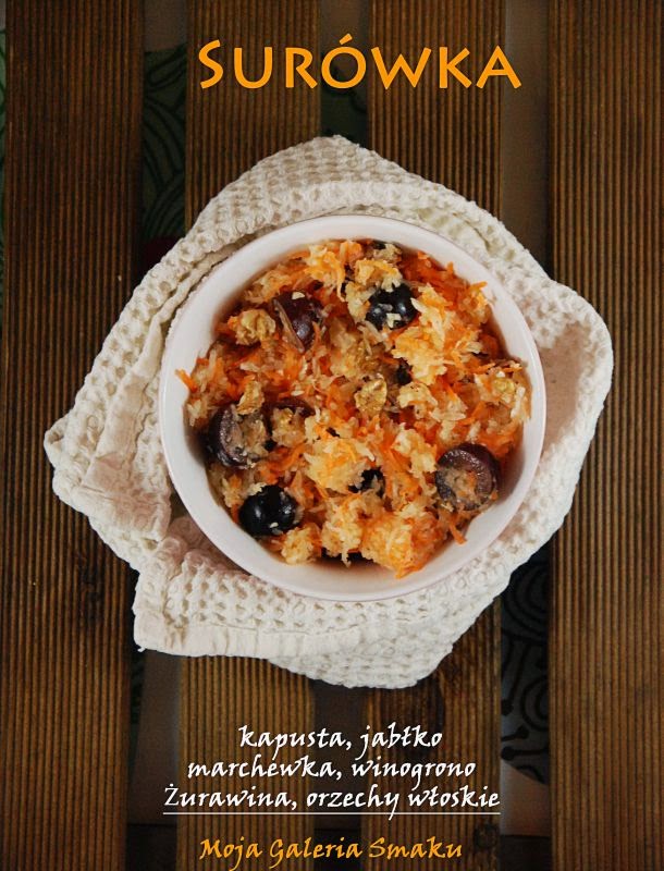 Zdrowa i pełna witamin surówka z białej kapusty, marchewki, jabłka, suszonej żurawiny,…