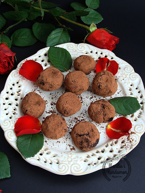 Czekoladowa czarna magia, która rozpala zmysły, działa na wyobraźnię, o rozkosznej aksamitnej konsystencji, orzeźwiającym lekko miętowym smaku, pobudza, uspokaja, relaksuje, koi, uwodzi i zwabia…Ten magiczny smak jest przyjemniościa dla duszy.Gdy w powietrzu poczujesz duszącą woń melancholii, niezwłocznie zaaplikuj sobie garść endorfin ukrytych w tych truflach…… Zostanie tylko słodki smak w