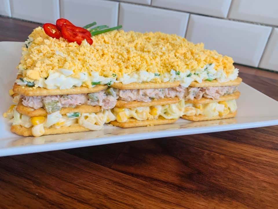 Bardzo efektowna i smaczna sałatka warstwowa z tuńczykiem na krakersach. Idealna na…