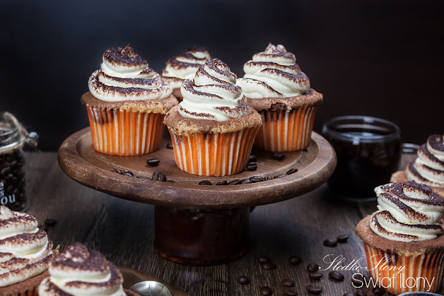 Wspaniałe babeczki tiramisu, które mogą być naprawdę niezłą konkurencją dla klasycznego deseru 🙂 Puszyste biszkoptowe ciasto w dwóch wersjach: jasnej i z kakao, nasączone kawą z alkoholem, do tego pyszny krem z kremówki i mascarpone, a całość oprószona ciemnym kakao. Babeczki rozpływają się w ustach, świetnie przechowują się w