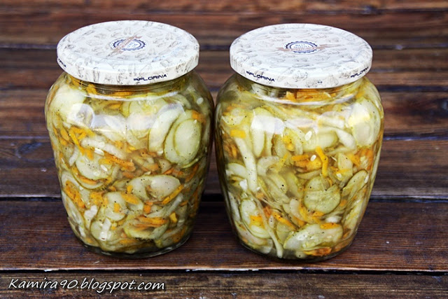 Sałatka z zielonych ogórkówSkładniki:3,5 kg ogórków0,5 kg marchewki0,5 kg cebuli1 szklanka (250…