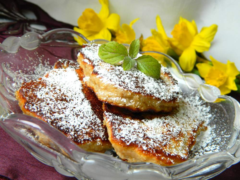 Słodkie śniadanie 🙂 25 dkg serka naturalnego 1 szklanka otrąb owsianych 1 jajko 3 łyżki mąki 3/4 szklanki mleka 2 łyżki płatków migdałowych garść orzechów włoskich 2 łyżki miodu 1 …
