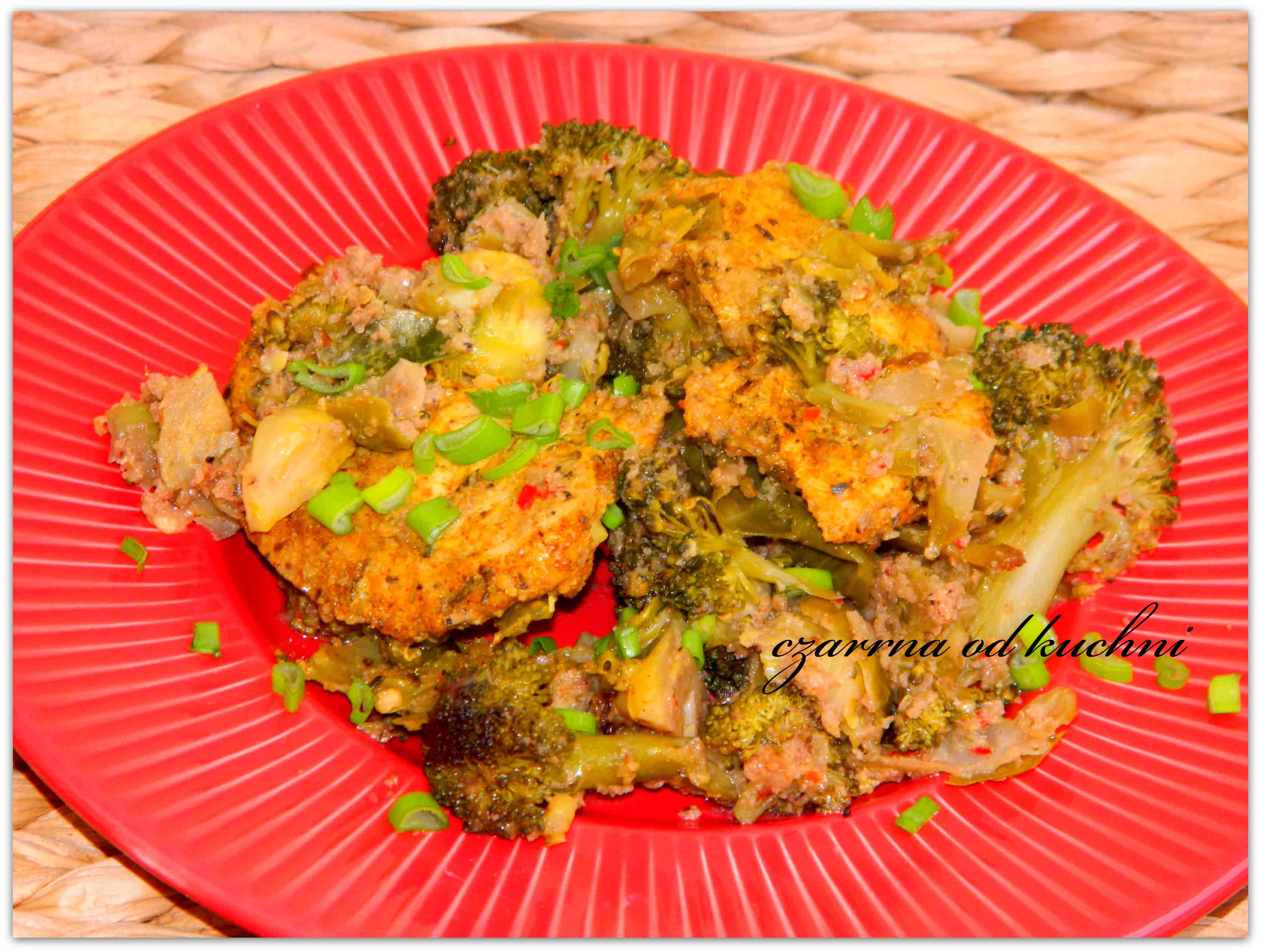 Filet jest wilgotny i delikatny Składniki filet z kurczaka ok. 1/2kg 1 brokuł 20 dkg brukselki bakłażan 1/2szt 3 ząbki czosnku papryczka chili 1/2szt 1 szt cebula dymka sól i …