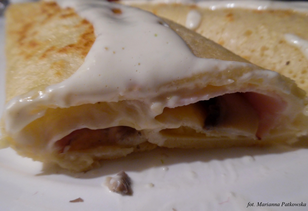 Naleśniki z szynką, pieczarkami, serem i domowym przepysznym, lekko słodkawym sosem czosnkowym, to bardzo proste i przepyszne danie na każdą kieszeń. Idealnie sprawdzą się zarówno w roli obiadu, jak i kolacji na ciepło!;)
