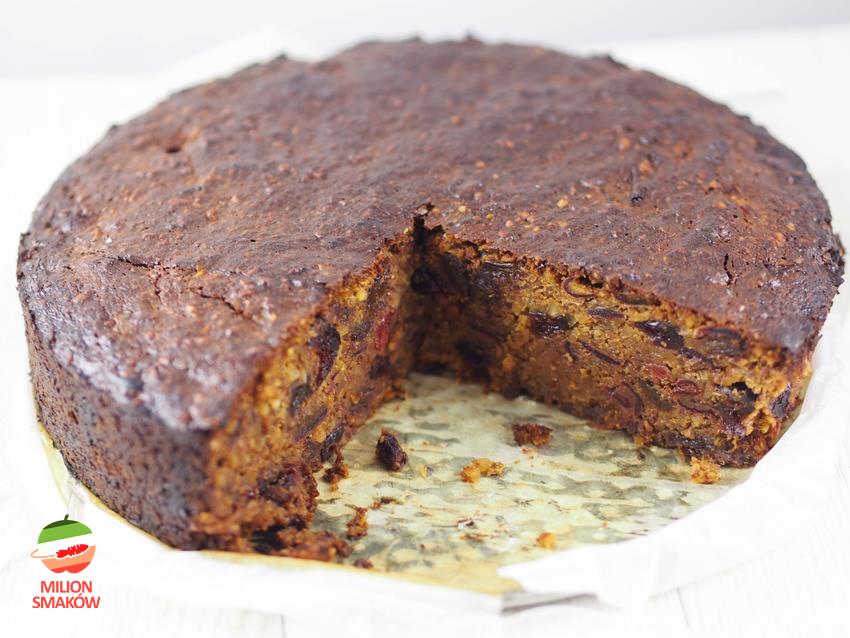 Baaardzo bakaliowe ciasto, idealne na kawy w zimowe popołudnia. Ciasto jest bezglutenowe, zamiast mąki znajdziemy w nim duże ilości różnorodnych bakalii. Zaskoczyć może lekko czekoladowy smak, mimo że w cieście nie ma czekolady.