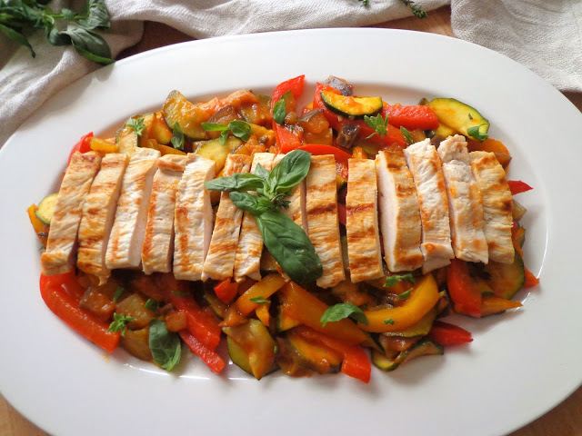 SKŁADNIKI 2 cukinie 1 bakłażan 1 czerwona papryka 1 żółta papryka 1…