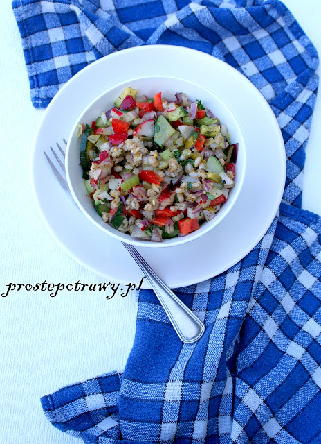 Składniki : 2 szklanki kaszy pęczak, można więcej1 cukinia bez obierania4 łodygi…