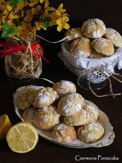 Popękane ciasteczka to jedne z moich ulubionych małych słodkości ;)Są proste do zrobienia, nie wymagają skomplikowanych zabiegów cukierniczych, a swój wspaniały wygląd zawdzięczają różnicy temperatur.Na blogu jest już przepis na popękane ciastka z gorzką czekoladą- intensywnie czekoladowe, chrupiące na zewnątrz, mięciutkie w środku.Teraz pora na jasną wersję, o cytrynowym,