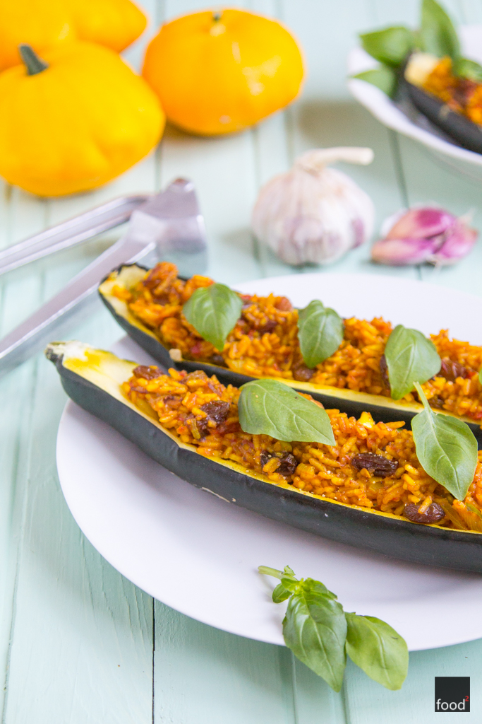 Cukinia faszerowana aromatycznym ryżem i rodzynkami