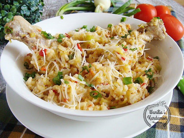 Jedno z moich ulubionych dań, kremowe, delikatne a jednocześnie sycące, wszystko robi się na jednej głębokiej patelni. Przygotowanie tej potrawy nie jest trudne, poradzą sobie nawet ci którzy dopiero rozpoczynają kulinarną przygodę. Do jego przygotowania użyłam pałeczek drobiowych, oczywiście można obrać wcześniej mięso od kości lub użyć fileta z kurczaka,