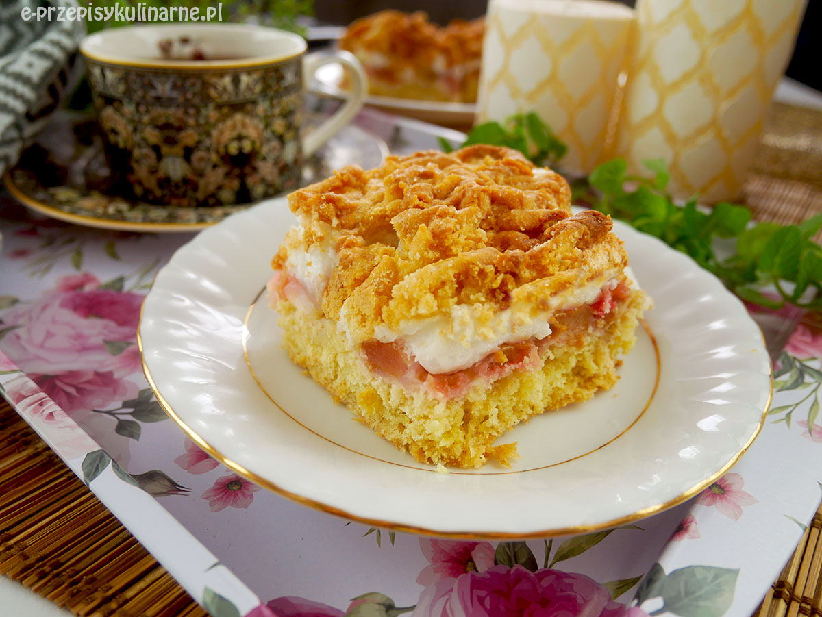 Kruche ciasto z rabarbarem i bezą – przepis na ciasto Pleśniak