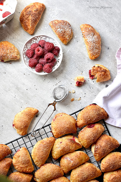 Przedstawiam pierożki- na słodko, z malinami, białą czekoladą, z ciasta krucho-drożdżowego. Dosłownie…