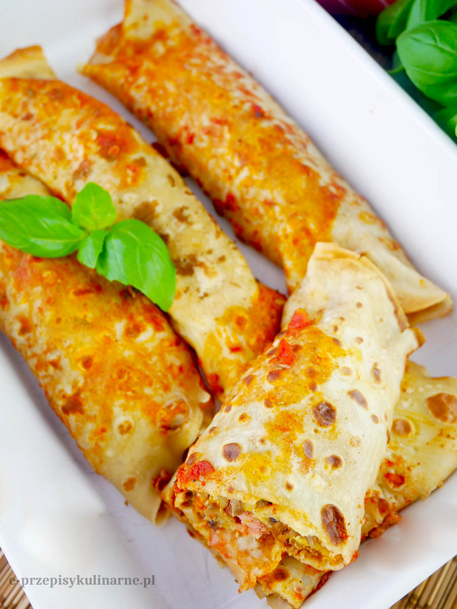 Naleśniki z kiełbasą, pieczarkami i serem zapiekane w piekarniku to przepis na…