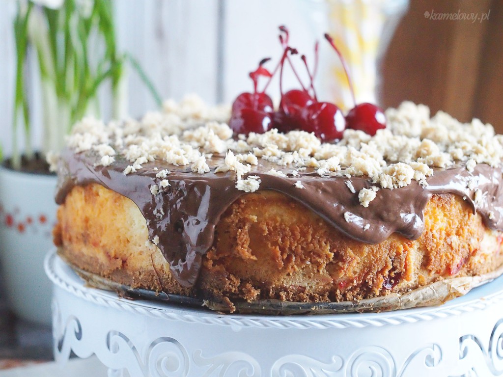 Święta niebawem, warto więc zainteresować się przepisami na pyszne świąteczne wypieki. Proponuję dziś łatwy sernik z dodatkiem pysznej chałwy i wiśni kandyzowanych, oblany polewą czekoladową. Jest pyszny! Polecam nawet niedoświadczonym w kuchni, gdyż jest bardzo łatwy w przygotowaniu:)