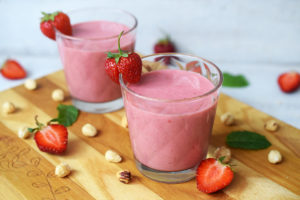 Zabezpieczony: Koktajl truskawkowy z odrobiną orzechów i kruszonym lodem – wykonany blenderem