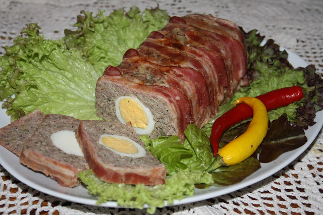 Kolejny z cyklu wytrawnych wypieków na święta Wielkanocne. Choć taka pieczeń sprawdzi się również na kanapki w ciągu całego roku. Mięsko z niespodzianką- jak to mawiają moi synowie, dostało dziś nowego smaczku, dzięki obłożeniu go do pieczenia plastrami boczku