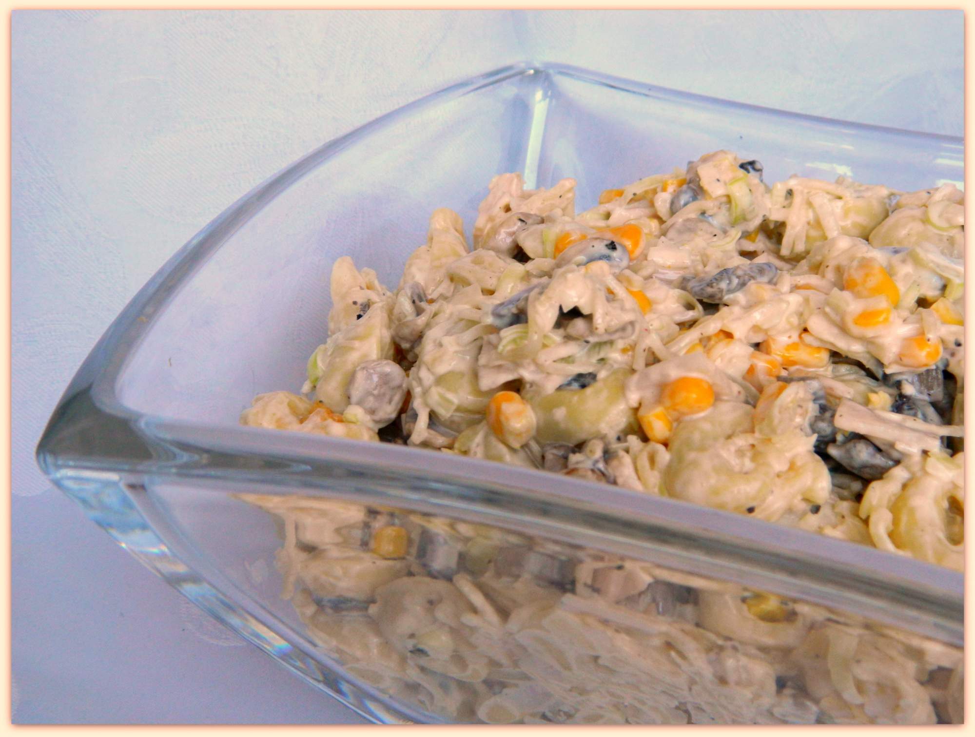 Idealna na przyjęcie 🙂 Składniki 1 opakowanie grzybowego tortellini 1 słoik selera w zalewie 1/2 pora 10 dkg szynki drobiowej 1/2 puszki kukurydzy 30 dkg pieczarek majonez sól, pieprz Sposób …